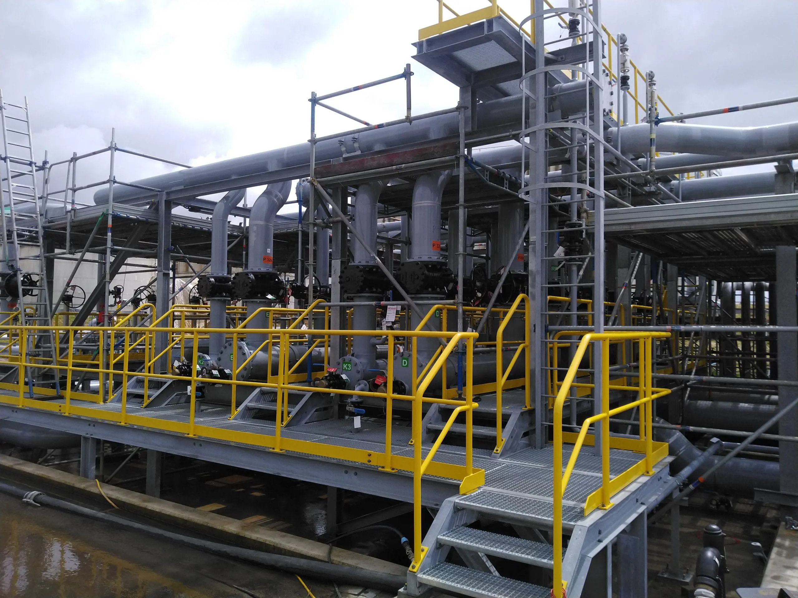 In carefully planned phases, the new construction is being assembled, and existing pipeline systems are systematically decommissioned and connected to the new infrastructure. As the main contractor, J de Jonge is responsible for all civil works, steel structures, scaffolding, and piping activities.