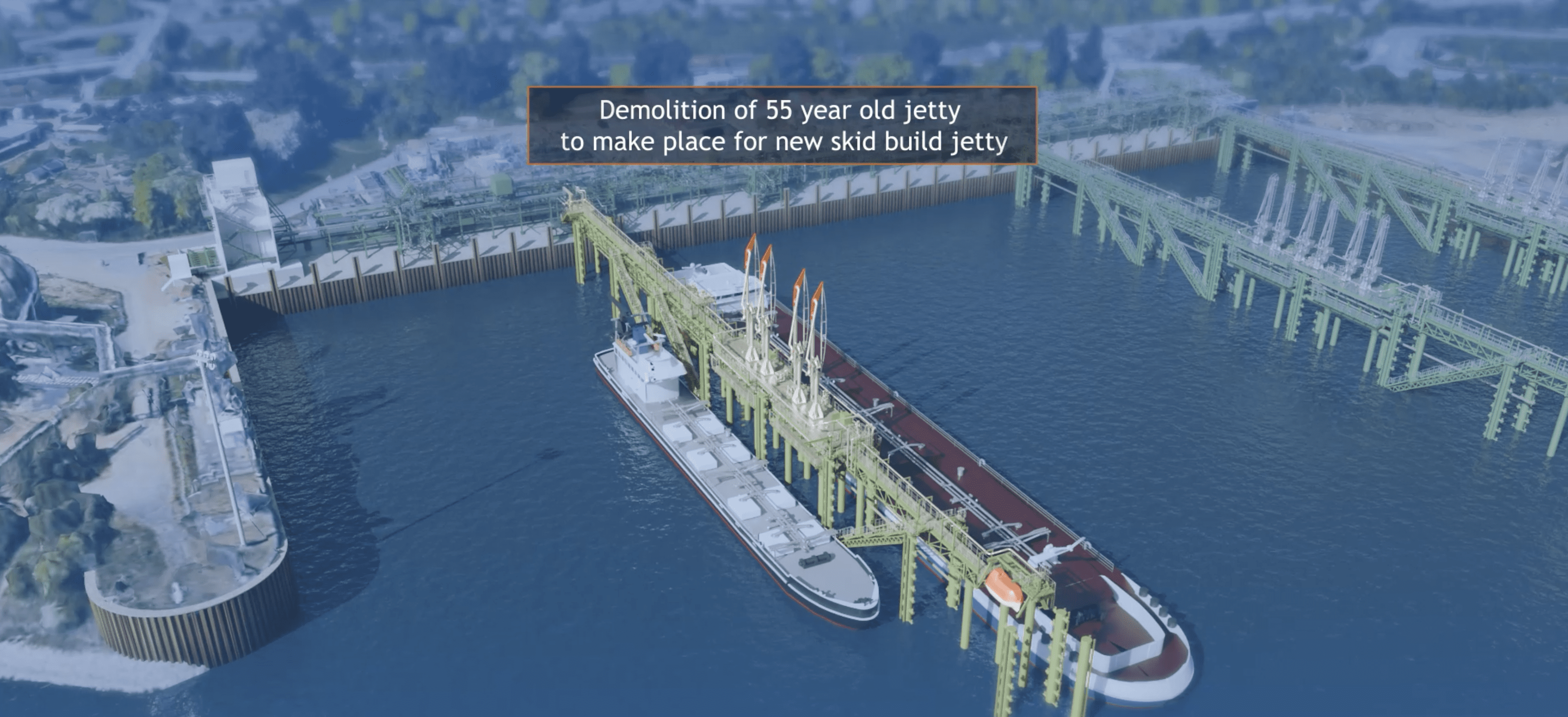 We are excited to announce that J de Jonge Group has been awarded a mayor contract by LyondellBasell Wesseling for the demolition of an existing jetty and the engineering, procurement, and construction management of a new jetty for Naphta. This includes the foundation, steel structure, piping, E&I, marine loading arm, pumps, firefighting, pressure vessels, CCTV, and emergency escape safety boat.