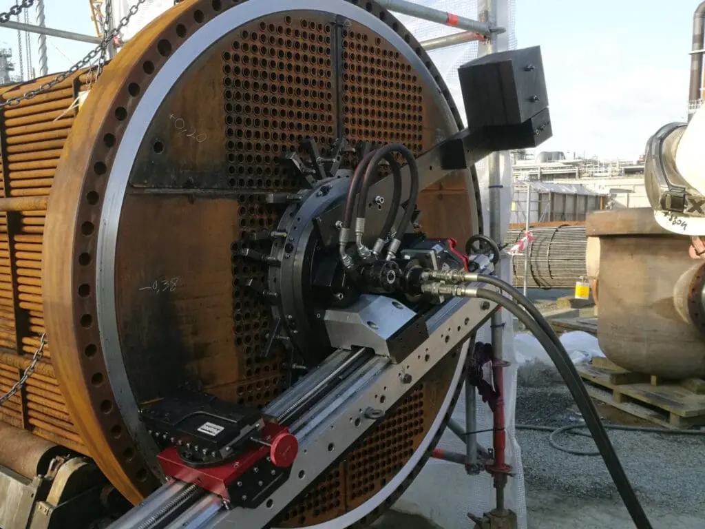 On-site pipe cutting, beveling, flange facing, line boring, (circular) milling, grinding, and drilling and tapping.