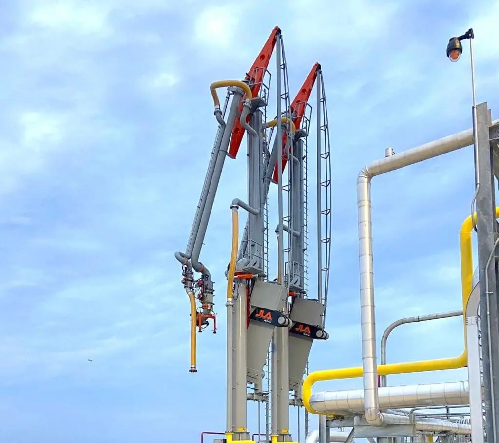 JLA was responsible for the complete manufacturing, supply, installation, and commissioning of two 12” Hydrotec hydraulic-operated marine loading arms. The loading arms were equipped with Emergency Release Couplers, a hydraulic power pack, and an electronic control panel. Additionally, JLA provided a piggyback-mounted 8” vapor return system and supplied the hydraulic power pack, main control panel, and satellite control room control panel.